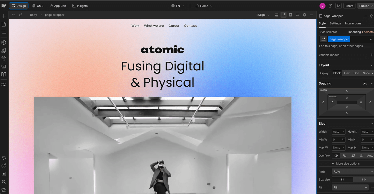 Quelques mois après la mise en ligne du site, l’agence a fait évoluer sa direction artistique. Grâce à Webflow, nous avons pu adapter rapidement l’ensemble du site en interne coté design : mise à jour des composants, ajustement des styles, etc.